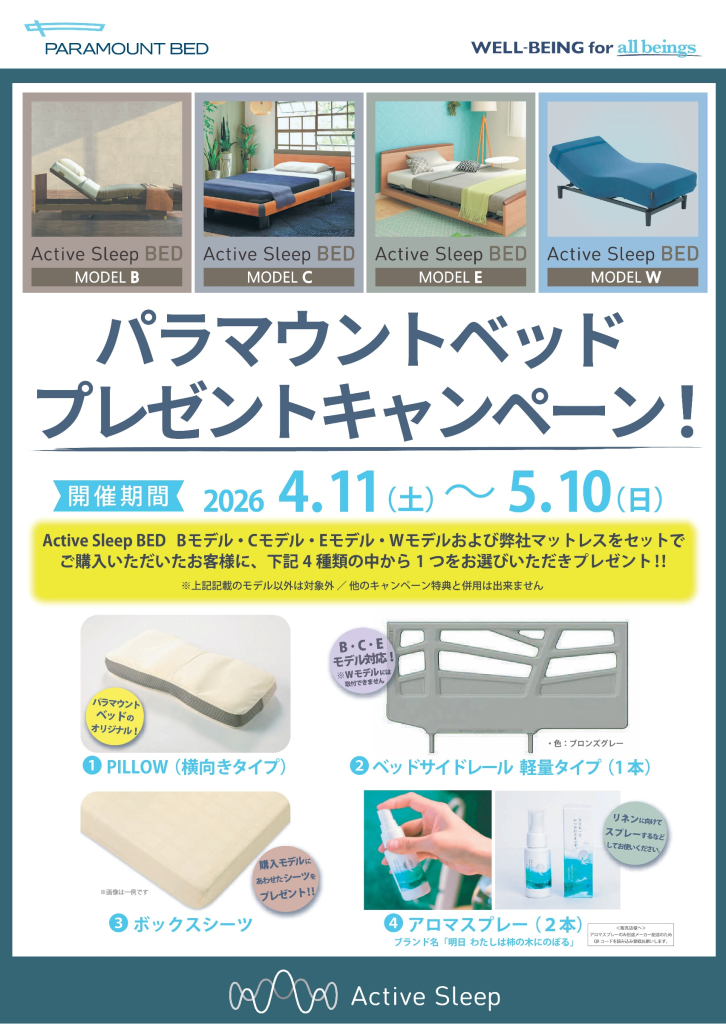 パラマウントベッド「Active Sleep」プレゼントキャンペーン開催!(4/11〜5/10)